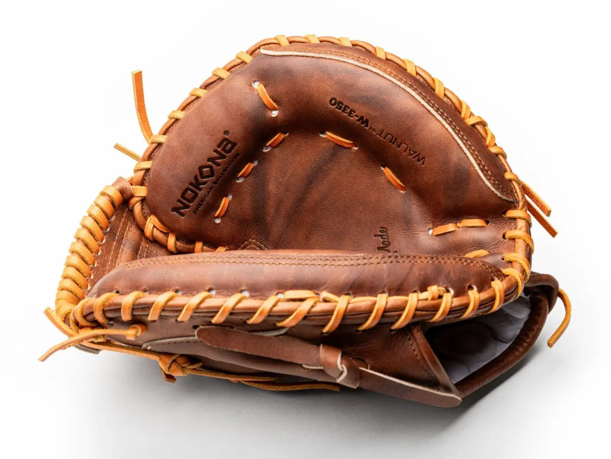 The ultimate combination of ballglove innovation, timeless beauty, and game-readiness. Inspired by Nokonaâs rich history of handcrafting ballgloves in America, our proprietary Walnut Crunchâ leather is a Nokona signature. The Walnutâ series features patented Precision Edge construction for a flawless fit between the liner and outer shell, and a smooth, well-formed pocket. The perfected alignment of Precision Edge creates superior feel and ball control, maintains supreme leather integrity, and is made for top performance. The classic styling of Walnutâ is taken to the next level with custom stamping along the pinky and ring finger, as well as a unique flag patch made with Heritage Gold thread for a vintage feel. This premium series has great stability, strong durability, and a game-ready feel.