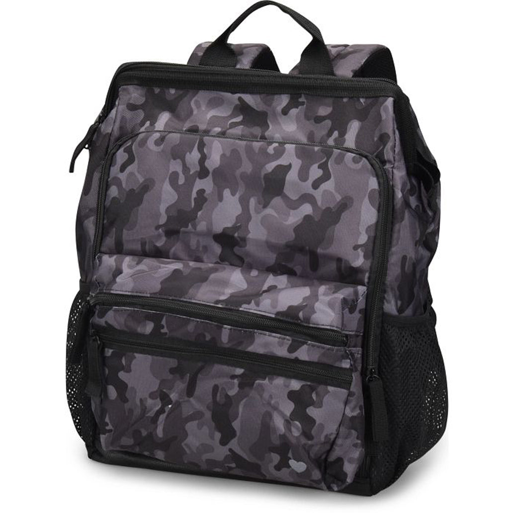 - Made of 100% polyester with a durable canvas construction, this backpack comes in a variety of solid or print body designs, and its patent-pending design ensures you won't find another backpack like it. Available in one size measuring 12" x 9" x 16". THIS ITEM IS NOT INTENDED FOR USE BY CHILDREN 12 AND UNDER.