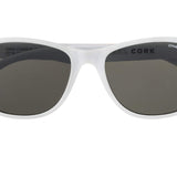 - Matte white frame with natural cork outershell temple and smoke polarized polycarbonate lenses that offer enhanced UV400 UVA and UVB protection