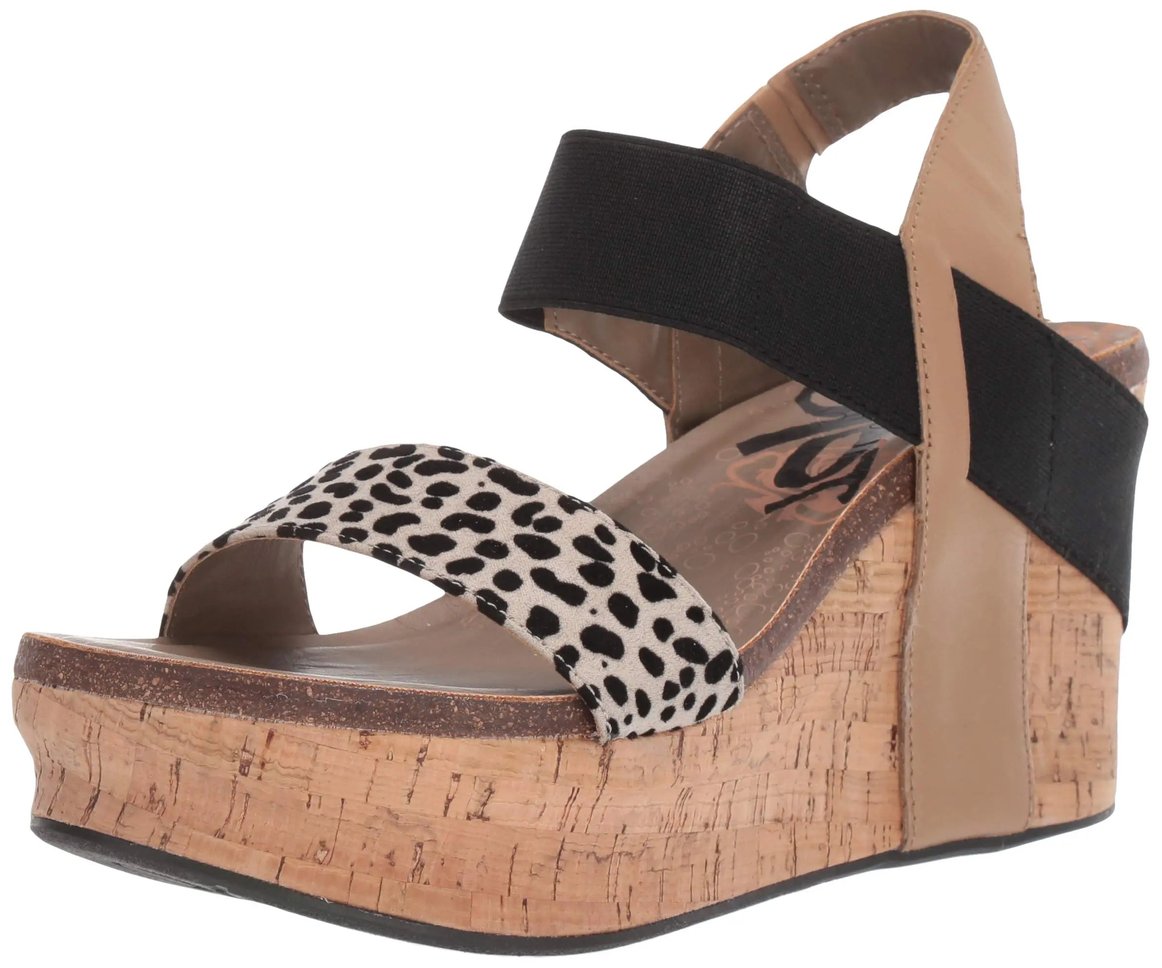 Footbed sandal on a wedge with elastic strap. Inspired by off the beaten track