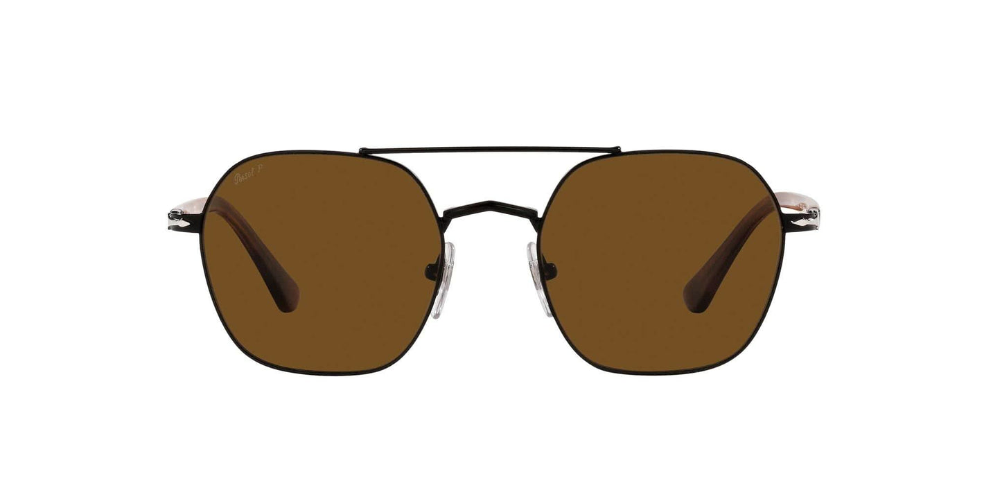 - FRAME FEATURES: PO2483S feature a square, black frame with an inverted-V bridge and brown polarized lenses.