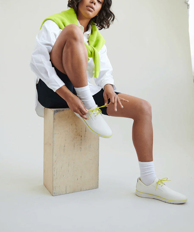 The Pacific is a hybrid: part sneaker, part dress shoe. Made with recycled and bio-based materials, it looks like work but wears like leisure. The Pacific takes you from boardroom to bar, city to street, and season to season.