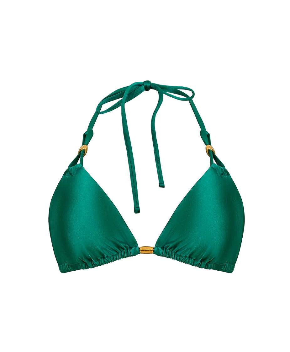 Elevate your swimwear with our Loop Tri bikini top in stunning Evergreen. Accented with 24k gold-plated accessories for a luxurious touch, it features a unique loop design and adjustable straps for the perfect fit and support.
