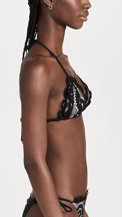 An effortlessly sexy triangle top crafted from our beloved hand-cut lace. This adaptable, adjustable silhouette makes a complete set with the Midnight Lace tie bottoms.