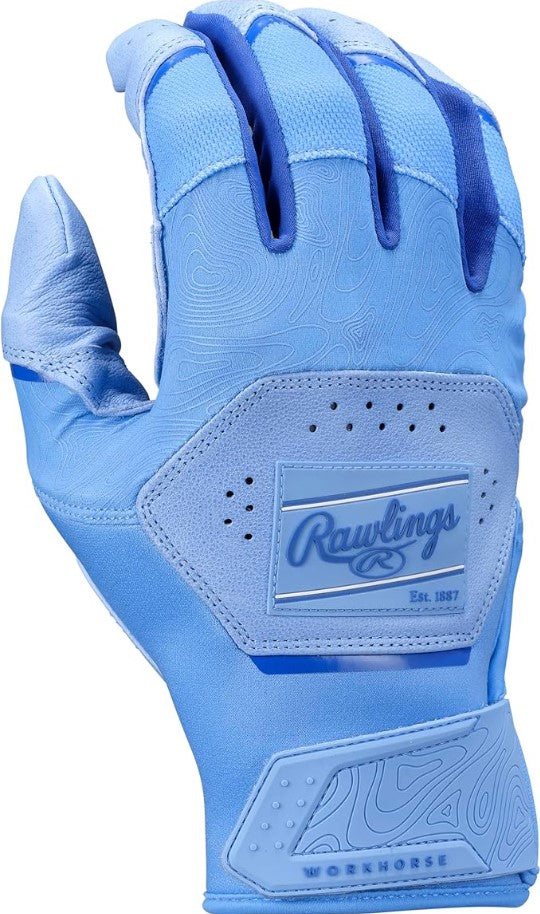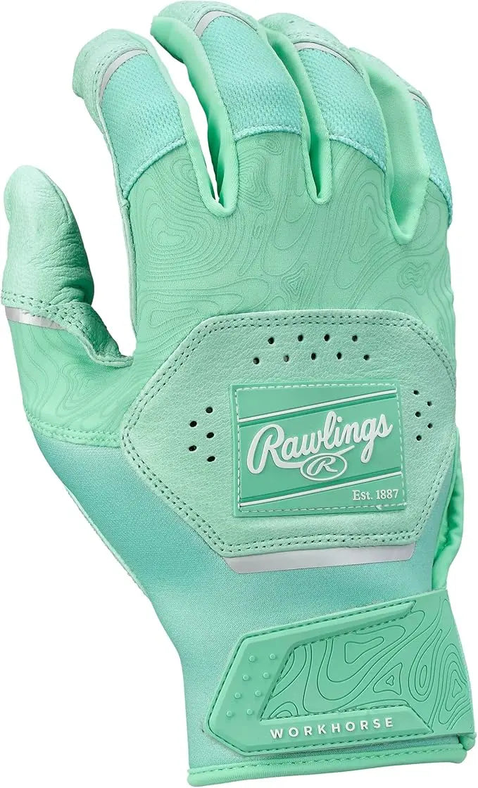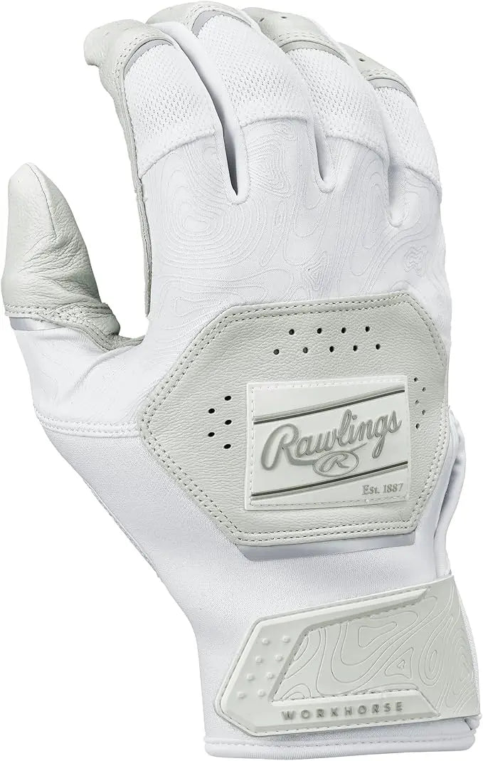 Walk up to the plate with more confidence by wearing the Rawlings Workhorse batting gloves. With increased durability and a fresh, new look, the Workhorse batting gloves are sure to keep you feeling ready every time you pick up your bat. These top notch batting gloves are carefully constructed with a premium Oiltac leather, to provide you with an elite feel and maximum control on every swing.