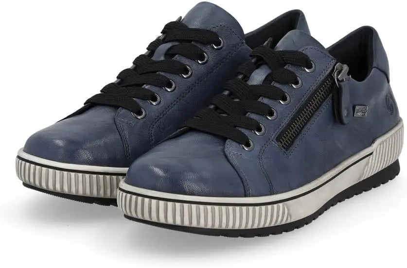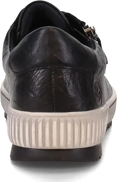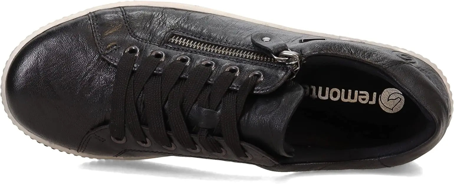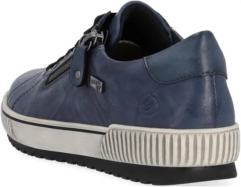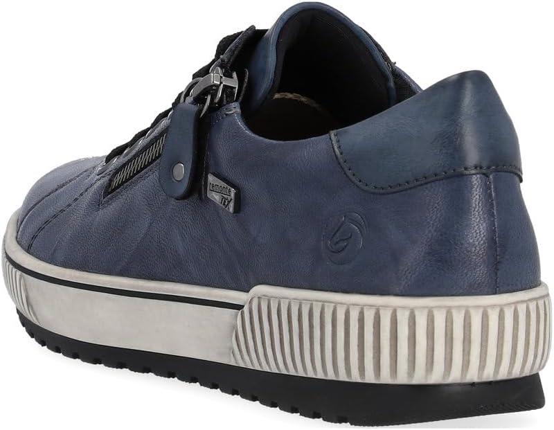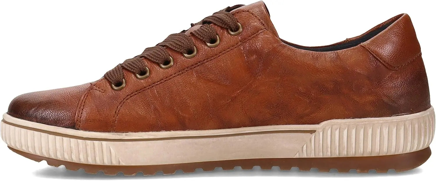 We love this sporty style from Remonte. The rich leather upper makes a statement paired with any outfit, and these shoes are guaranteed waterproof to keep your feet dry whatever the weather. The full lace-up front and side zip make them easy to get on and off, while the transverse flex sole gives the shoe flexibility in all directions. Leather and manmade uppers with water-resistant Tex membrane Lace up closure with side zipper for easy on and off Removable cushioned insole Sneaker style midsole with grippy traction outsole