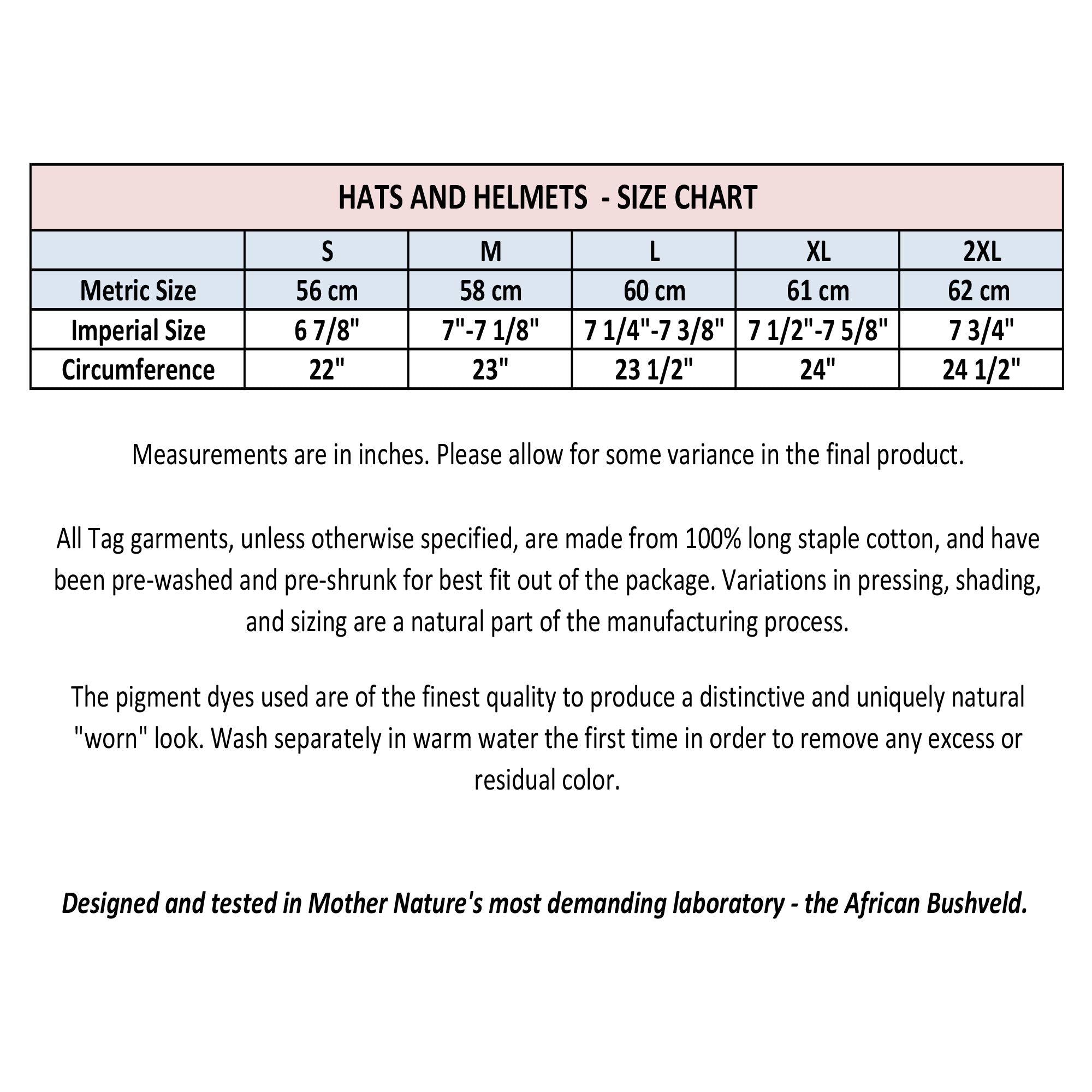 Safari Adventure Hat has a wide brim to block the sun's ultraviolet rays. The brim is stitched for durability, and features a bound edge. Heat is dispersed by way of two ventilation eyelets on each side of the crown. The natural cotton sweatband absorbs and evaporates moisture. A leather chinstrap incorporated into the design keeps the hat firmly seated on your head on the windiest days. It is very crushable, making easy work of packing and portability. Constructed in Africa from 5 1/2 ounce Cotton. This is simply the best hat for any safari or bush adventure.