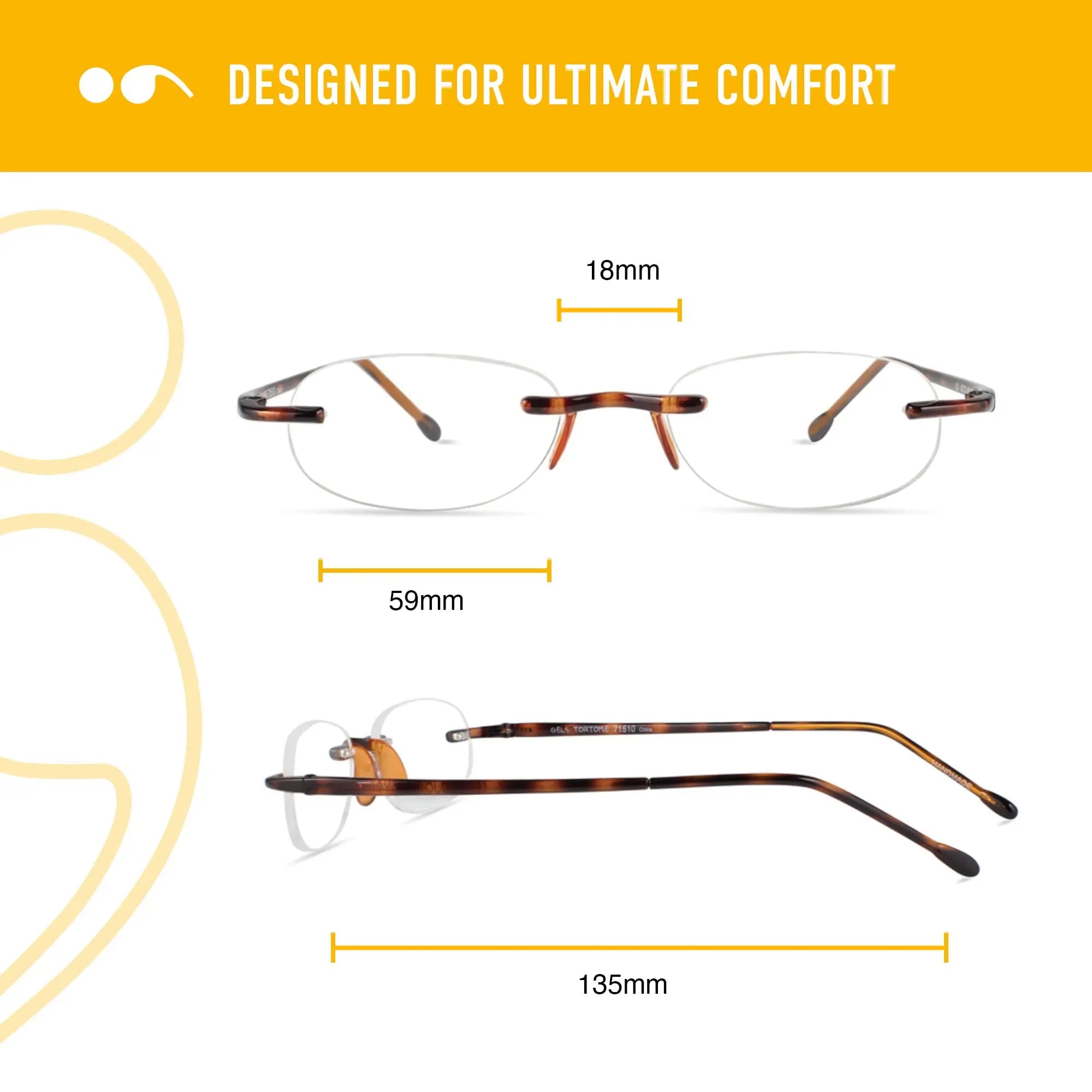 - SIMPLE YET SOPHISTICATED: Gels Originals are all about effortless style; all about understated elegance. With their rimless design and face-flattering oval lenses, these readers for men and women are compliments waiting to happen. And weve brought the frames to life in a myriad of unique colors. Love your readers classic & timeless? Colorful and full of character? Youll find the look you want from our collection. Feel free to grab a couple of different colors to always suit your mood.