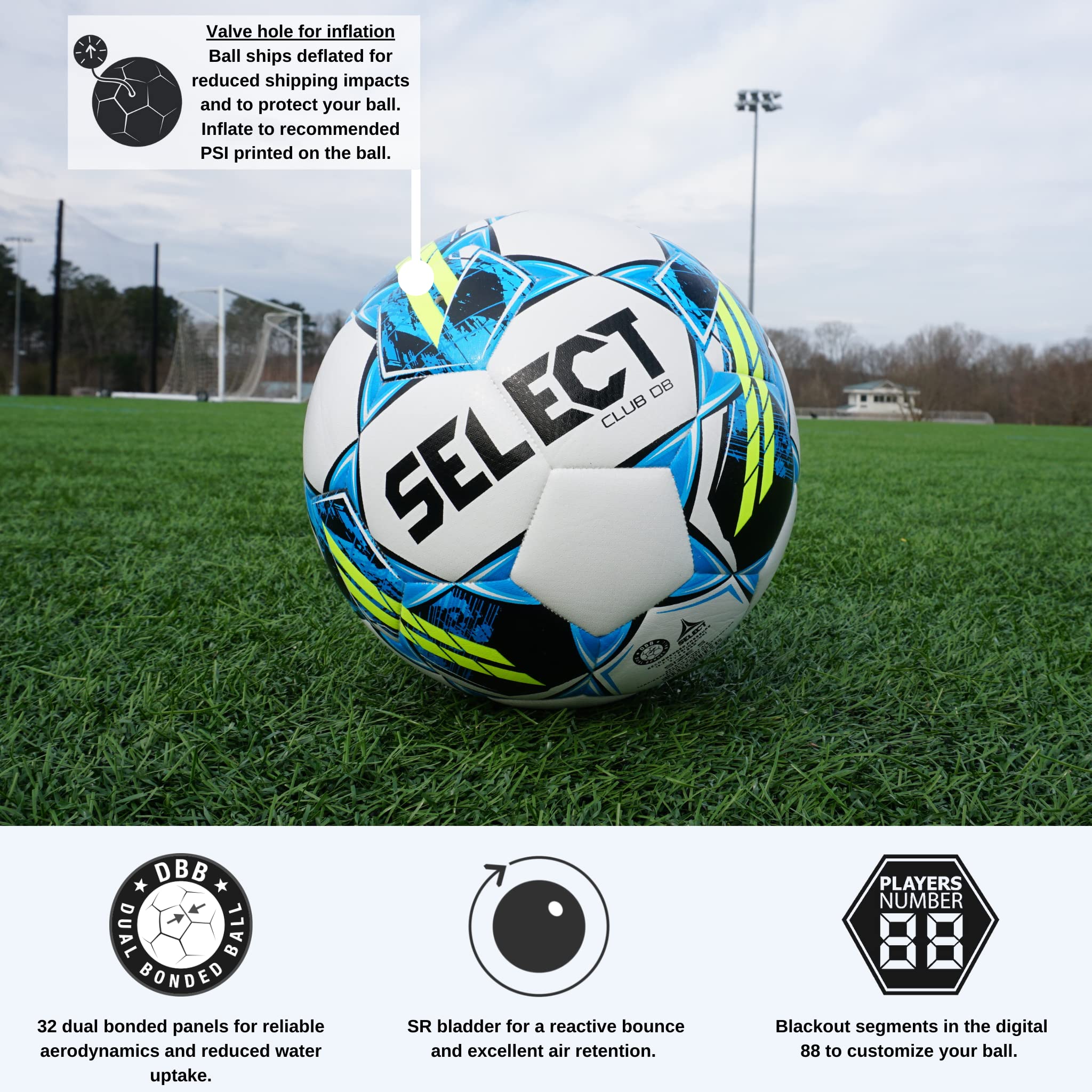 - PREMIUM QUALITY DUAL-BONDED SOCCER BALL: The NEW Club DB with dual-bonded panels - machine stitched and seam-sealed with glue for less water uptake