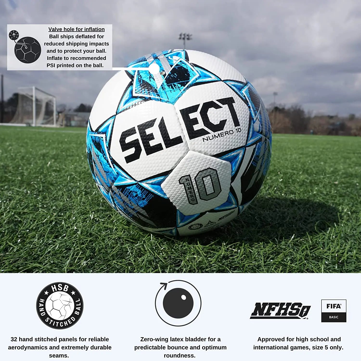 Select Numero 10 V22 Soccer Ball White/Blue Size 5 NFHS,NCAA Approved