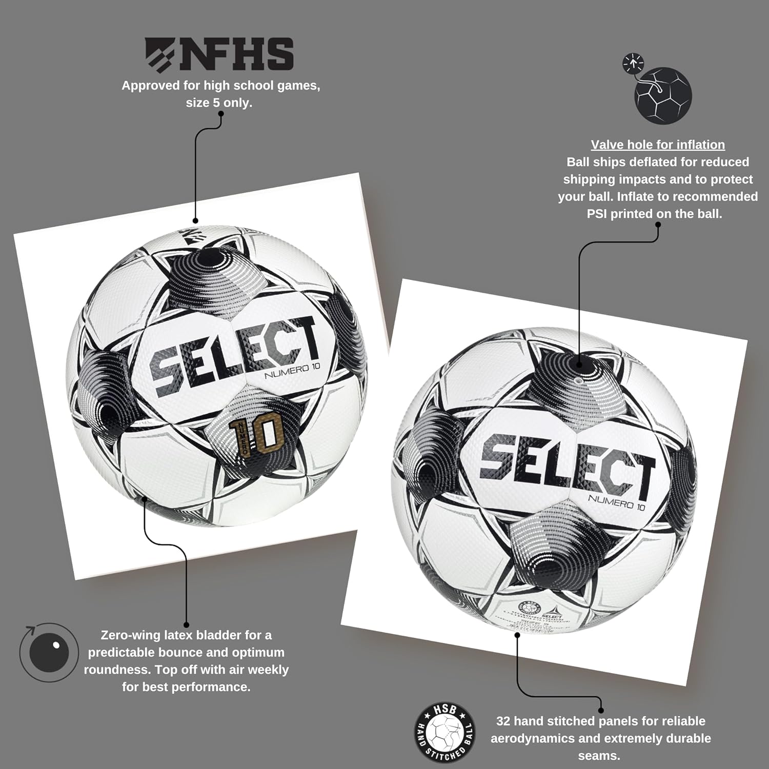 A firm, reliable and durable soccer ball ideal for high school, club and collegiate training and matches. NFHS approved. PU Synthetic leather laminated with 2mm foam construction for soft touch. The 32 hand stitched panels combines with Zero-wing latex bladder ensure a straight flight, lively bounce and perfect roundness