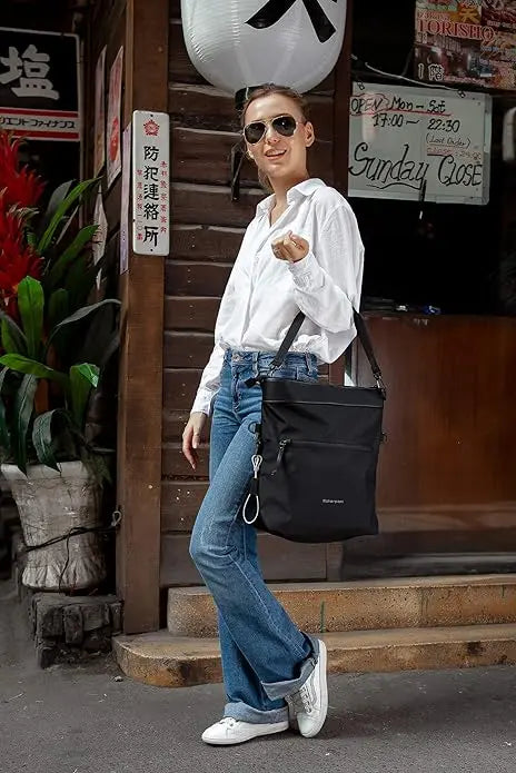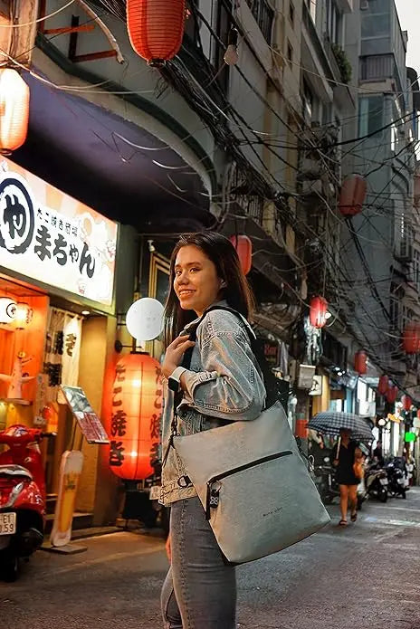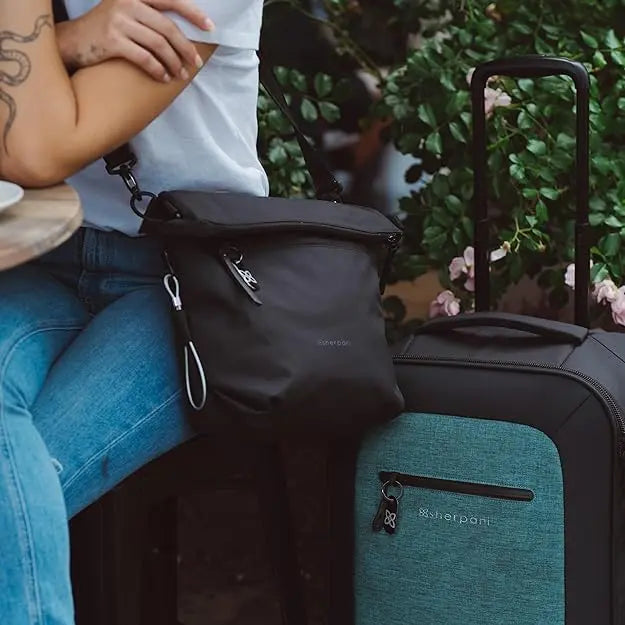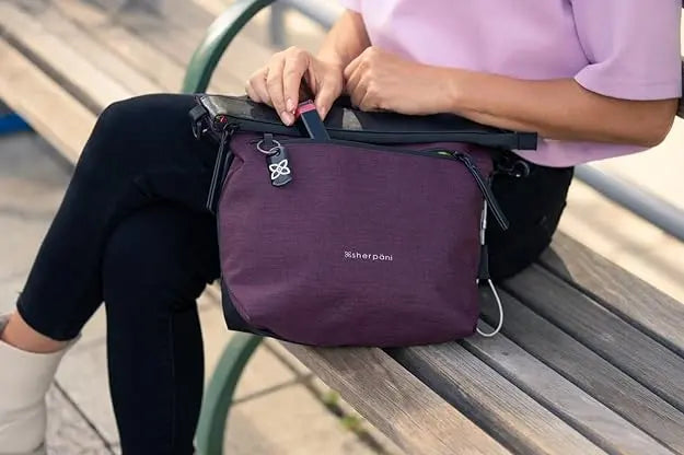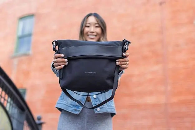 With six different ways to style, Vale is as unique as you are! The bag is made from recycled material and includes Sherpani Anti-Theft technology: locking zippers, RFID protection, a wire-loop chair lock, a ReturnMe tag, a slash-proof bottom and our proprietary wireless slash-proof crossbody strap.