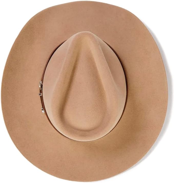 Durable and water-repellent for long days on the range, the Seneca 4X Cowboy Hat is constructed of 4X quality buffalo fur felt and features a pinch front crown, interior leather sweatband and a tooled leather hat band accented with a silver buckle set. A member of Stetson’s Buffalo Collection — Western hats handmade with the finest all-natural buffalo fibers.