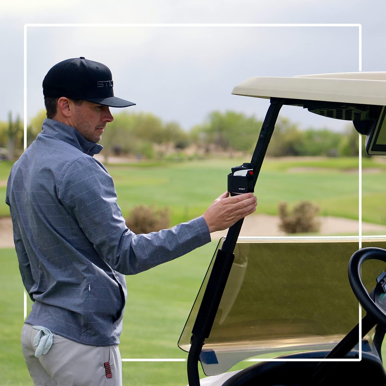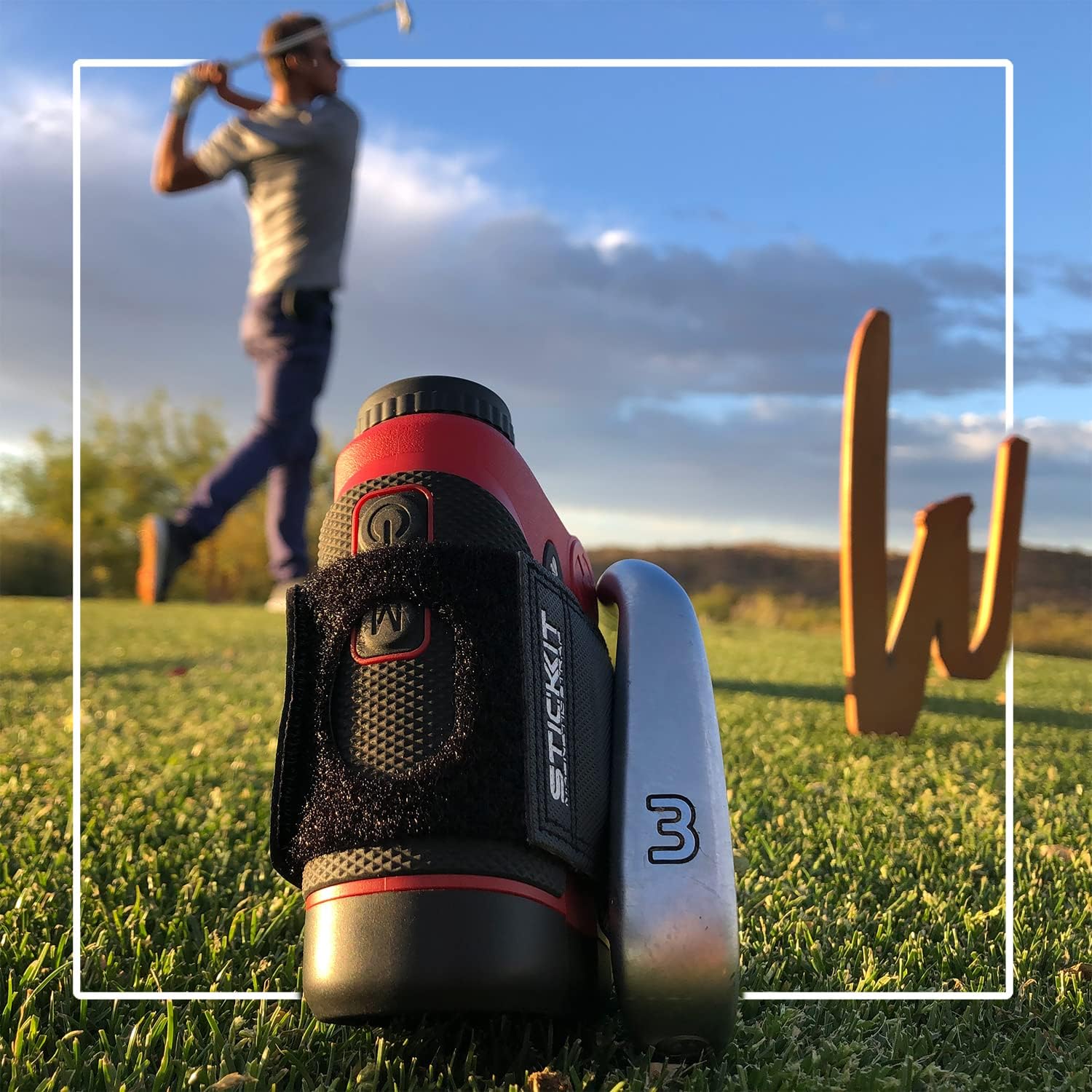 - ALWAYS IN REACH FOR WALKERS & RIDERS — STICKIT is the solution for what to do with your rangefinder between shots, for walkers and riders, sticking to carts, clubheads, and the STICKIT Metal Golf Bag Clip. Get grab-n-go access and a quick pick-up from the turf when shooting yardages away from the cart. Just grab it, shoot it and STICK IT!
