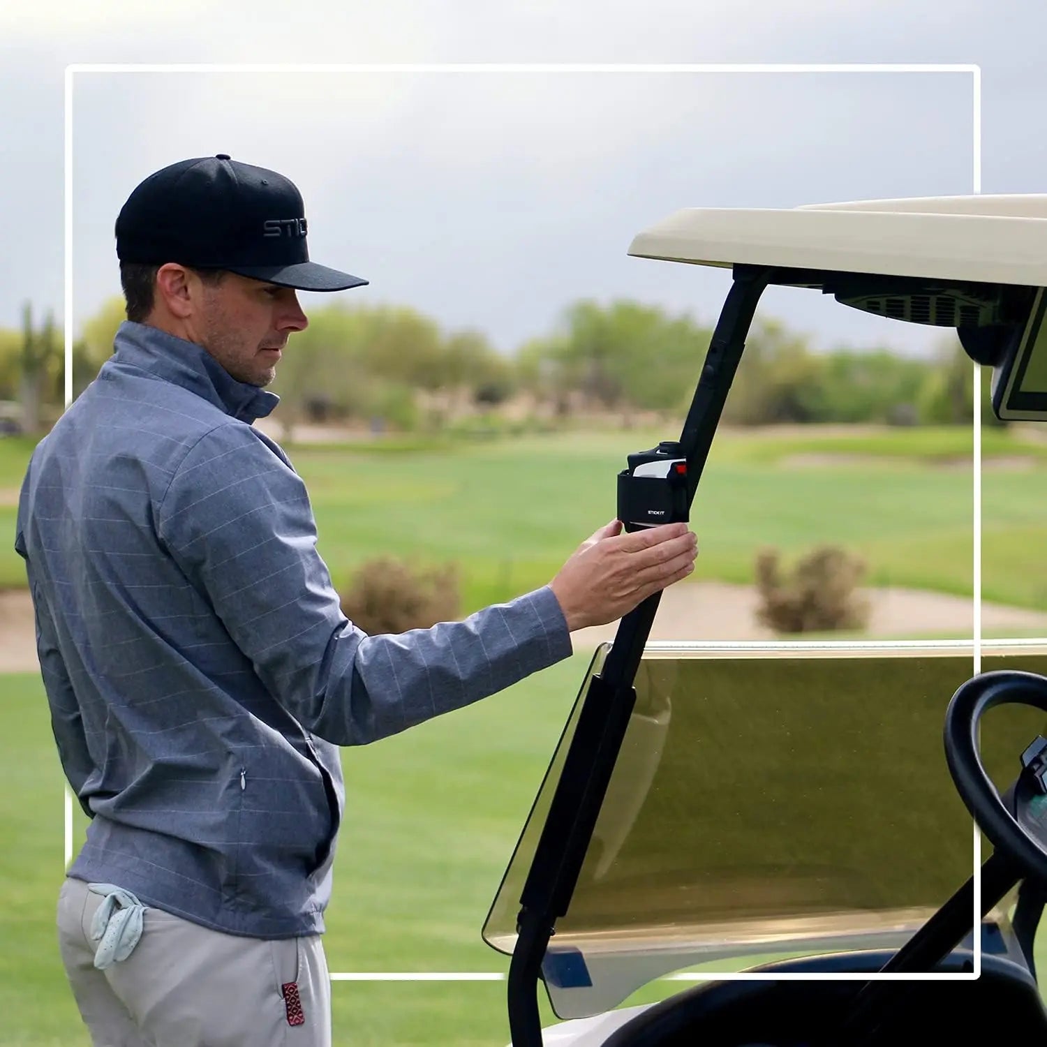 Attach your rangefinder to your cart’s steering column for a secure hold and easy access on the green.