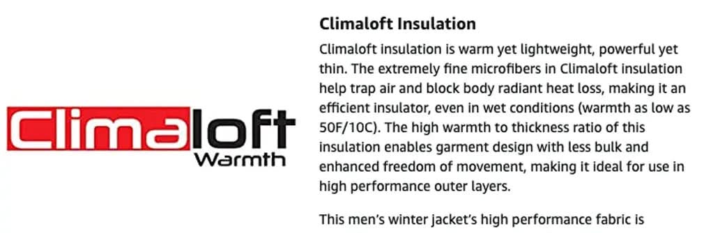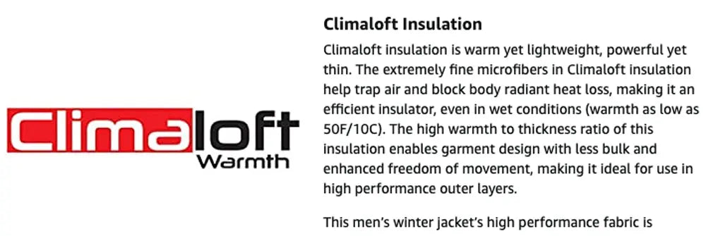 Climaloft Warmth protection is an added insulation contains ultra-fine polestor fibers that trp and hold body heat.