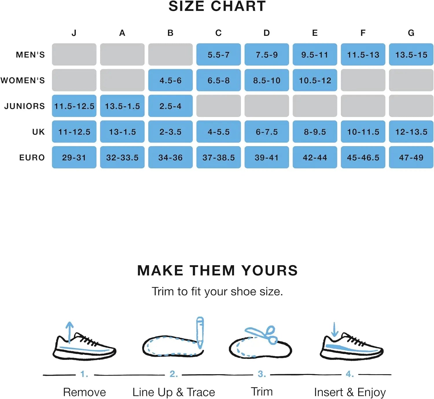 - Trim to Fit: Superfeet insoles are made to be trimmed to fit your shoes and boots; follow cutting instructions before use, and if you are between sizes, size up and trim down to fit