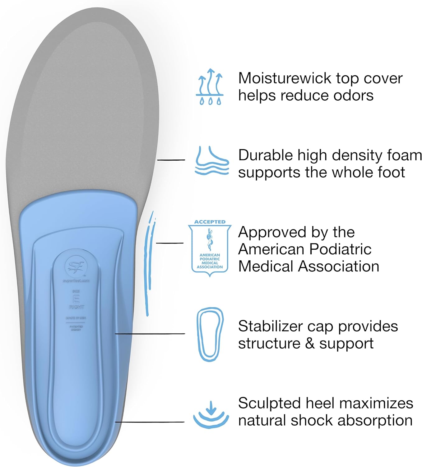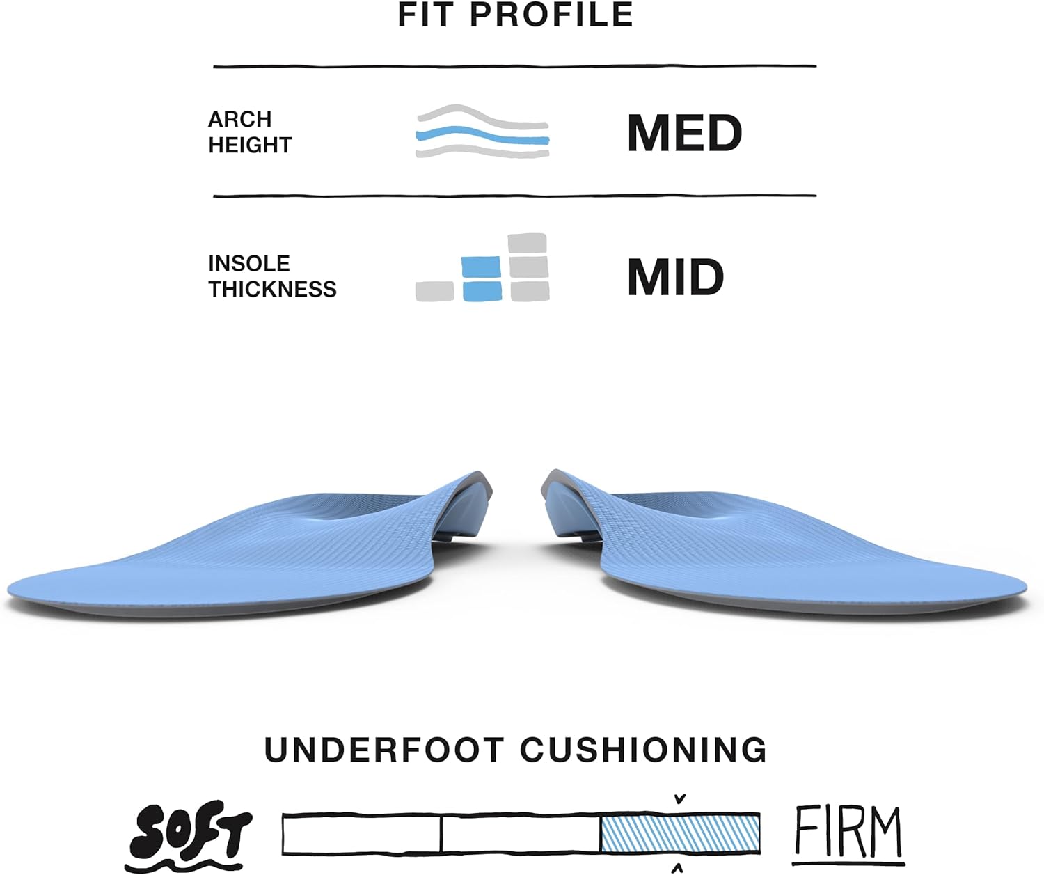 - Medium Arch Orthotic Support: Helps stabilize the foot, reducing stress on feet, ankles, knees, and back; all purpose insoles for 24/7 use and flat feet