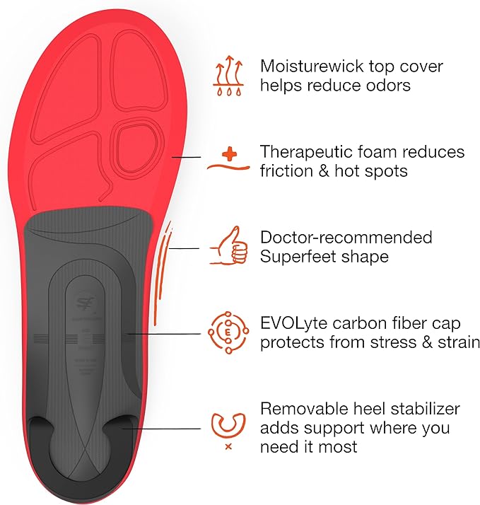 - Superfeet Insoles for Odor Control: Performance top cover helps reduce odors; maximum insole thickness and dual-layer cushioning for running and walking