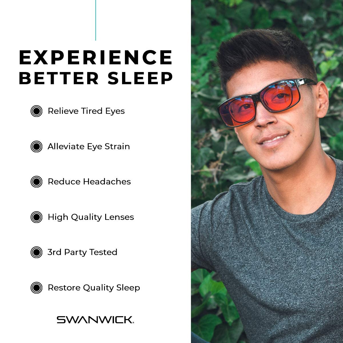 - PREMIUM NIGHTTIME BLUE LIGHT BLOCKING GLASSES: The specialized orange-tinted lenses in Night Swannies can block over 99-100% of blue light (400-500nm), significantly reducing screen time glare while providing superior visual clarity.