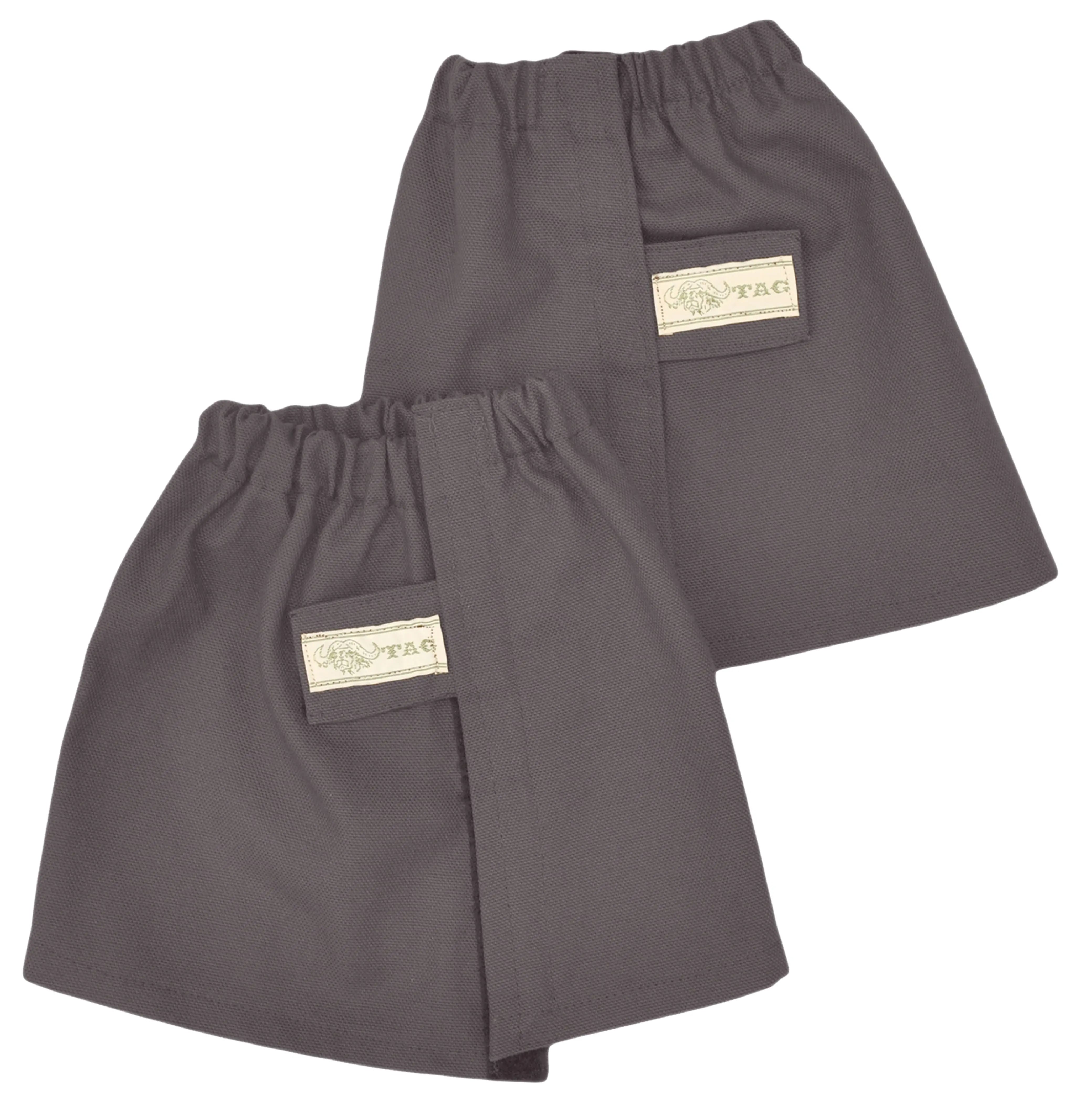 Safari Canvas Gaiters, made from medium weight cotton canvas, are great sock protectors to stop sticklers, sand and stones from entering your hiking boots and making you uncomfortable. The elastic tops keep grass burs from sticking to your shoe laces and making your skin itch. Hook & Loop Fastener in the back makes them easy to put on and take off. Machine washable for convenience and ease of care. These safari canvas gaiters, made in Africa from durable cotton canvas, are just the protection your feet need when hiking and hunting in remote places.
