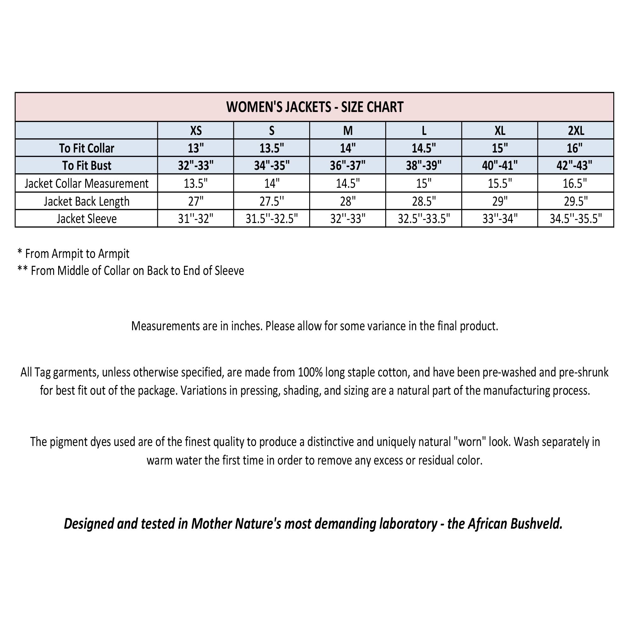• VERSATILE AND QUALITY: Made in Africa from 100% cotton, our Womens field or outdoor hunting outerwear has strong stitching to ensure maximum durability and performance. This multipurpose Men's jacket is perfect for hiking, fishing, hunting, travel or any outdoor adventure. EASY TO CARE FOR: TAG Safari Women Field Jacket, pigment dyed, pre-washed and pre-shrunk. It's fashionable and can be a perfect gift for friends, families or relatives. It's Machine Washable and easy to maintain.