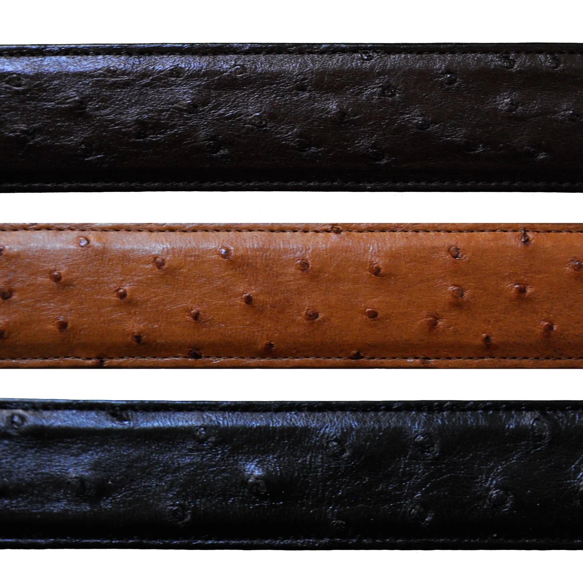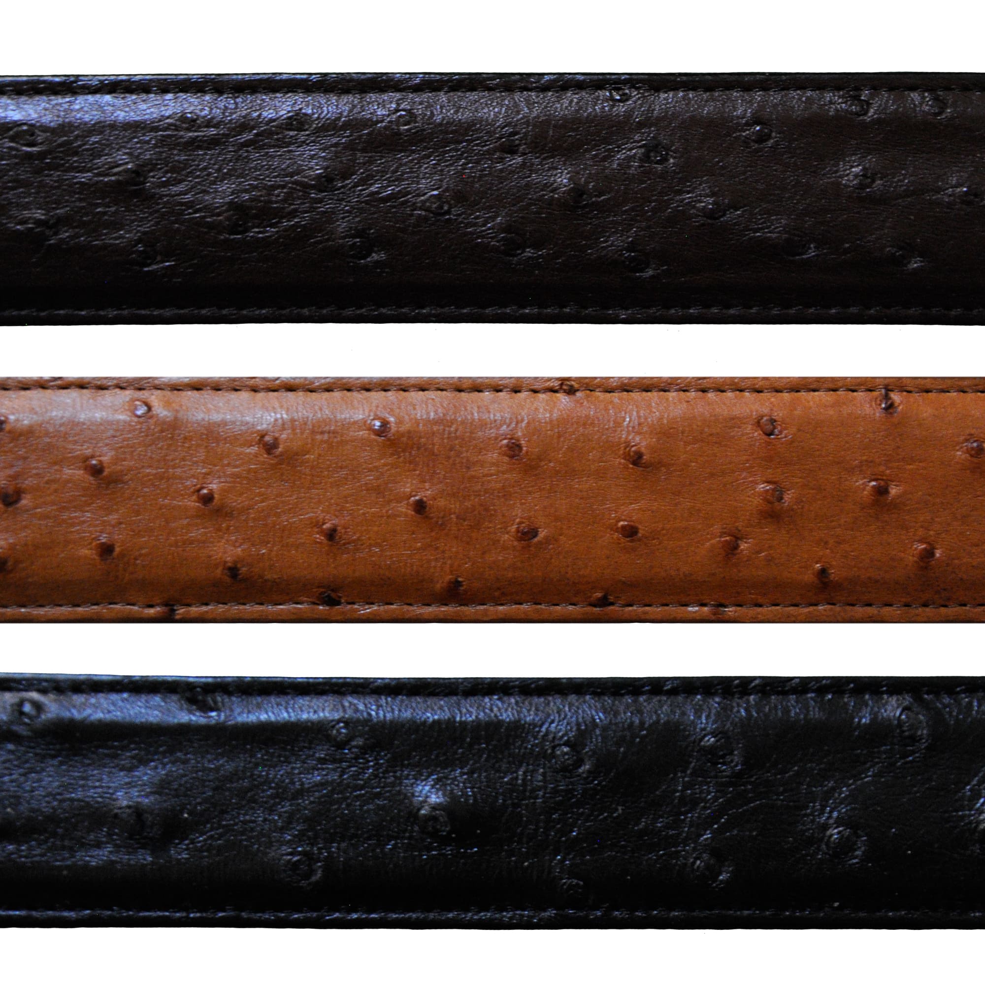 Genuine Full Quill Ostrich Skin Belt, handmade in Africa from ostrich leather. The coloration and patterns found in the skins used are completely natural, and differ from one belt to another for a truly unique look. Fully adjustable for easy exchange of the brass buckle, or for exact sizing to your pants waist without the need for special tools. Hand made with pride In The United States. Own a piece of the safari experience, perfect for days spent in the bush or for nights spent on the town.