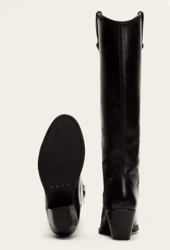 Step into timeless sophistication with The Frye Company Womens Jackie Button Tall Boots. Crafted from luxurious oiled leather, these sleek black boots deliver iconic western-inspired style with modern-day comfort. Featuring a stacked heel, contoured shaft, and signature side button detail, they are the perfect wardrobe staple for dressing up or down.