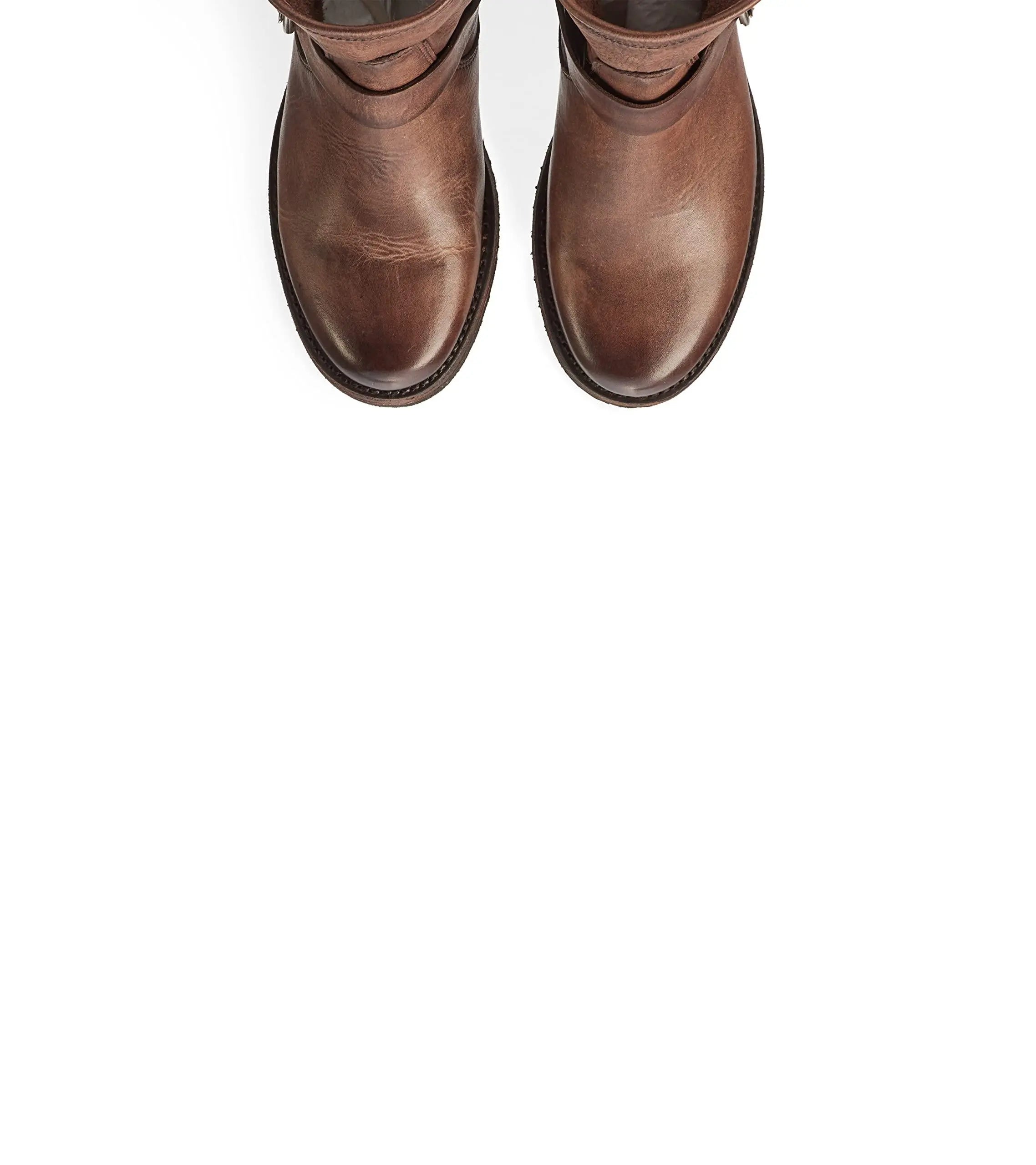 • WASHED AND OILED VINTAGE LEATHER boots for women treated with a heavy acetone wash that is hand antiqued and polished to give each pair a two-tone, worn finish effect