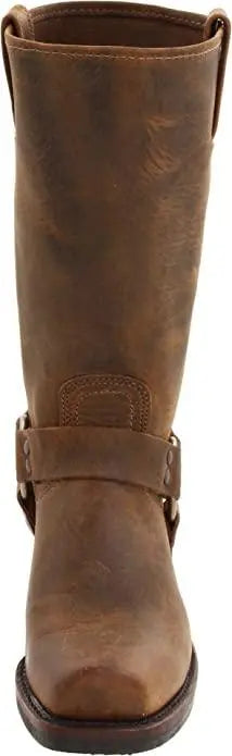 The women's belted Harness 12R boot from Frye has a rugged character and rough attitude but exudes pure style. This attractive pull-on boot has an oiled leather upper with brushed metal hardware, decorative ankle harness with buckle and o-ring detailing, a 14.75 inch calf circumference, neoprene oil resistant soles with a full-length leather midsole for maximum comfort and durability, and a cushioned insole for additional comfort. Made in USA.
