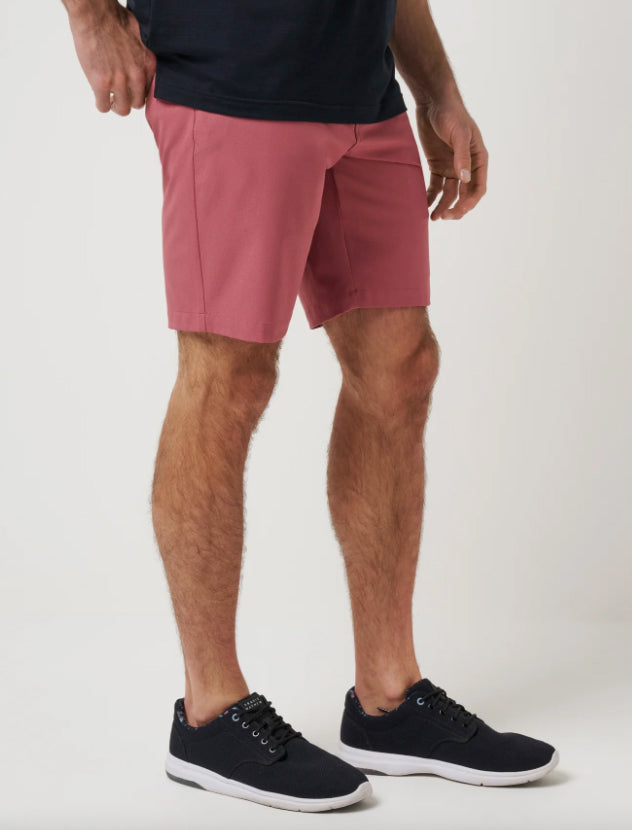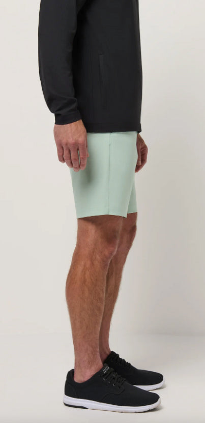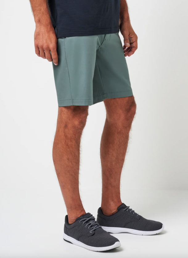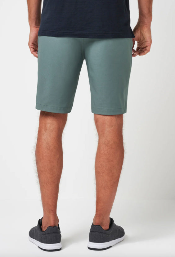 Featuring lightweight micro-ripstop technology, the TravisMathew Wanderlust Shorts are an ideal choice for everyday wear. Crafted from quick-drying and wrinkle-resistant fabric, these golf shorts keep you cool and comfortable all day. The 4-way stretch fabric of these shorts offers a better range of movement. From lounging at home, or getting ready for a golf match or office, these stretchable shorts work for different occasions. Zip-fly with a buttoned closure and belt loops. Mid-rise silhouette. Pull-on style. Brand clip label at the back pocket. Front hand and back pockets. 88% polyester, 12% elastane. Machine washable.