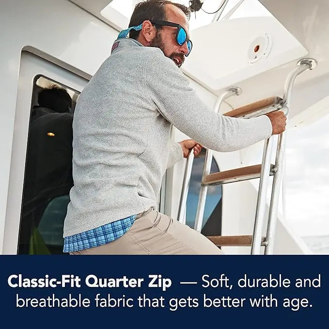 casual gatherings. Pullover style. Stand collar with quarter-zip placket. Long