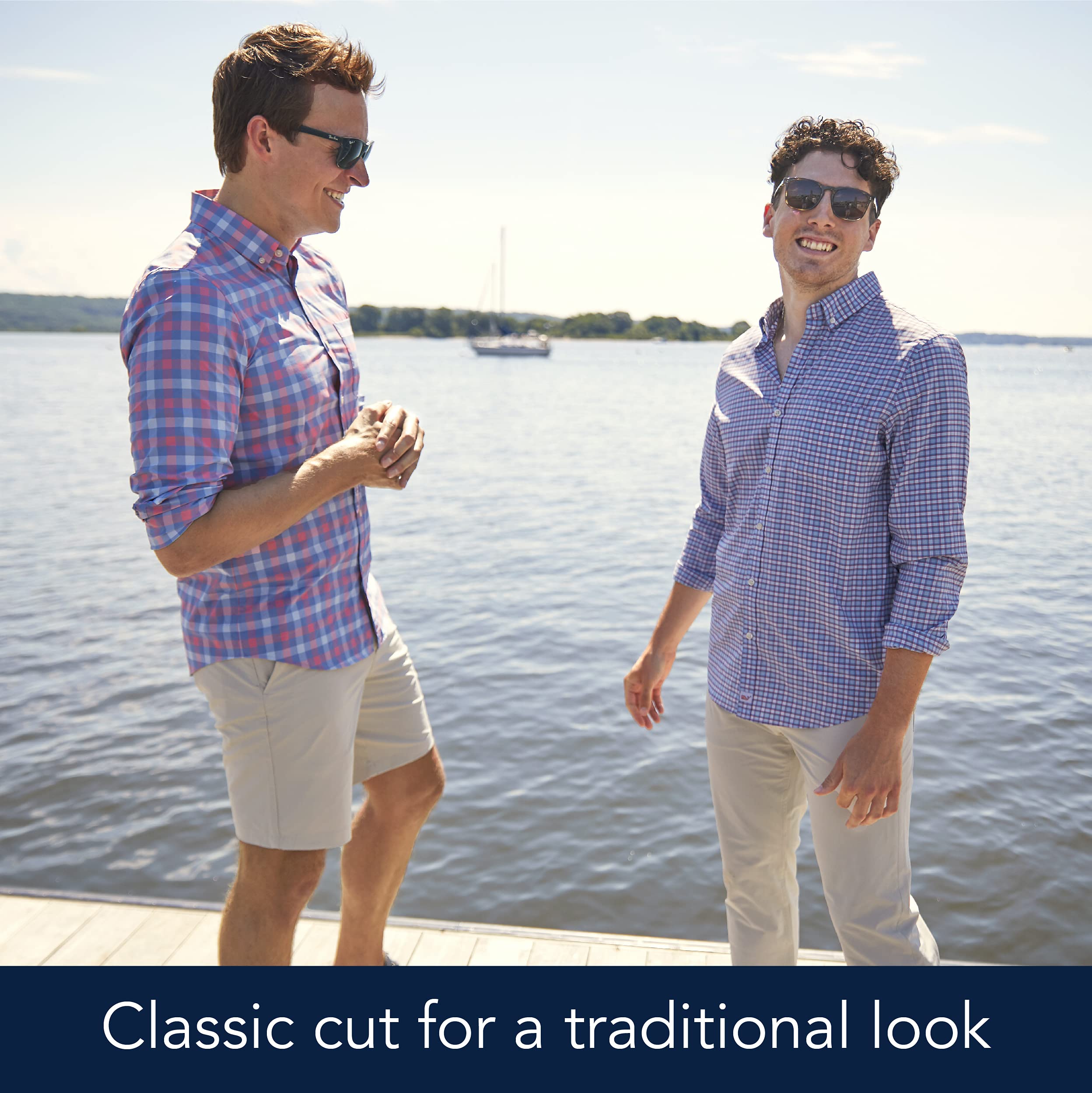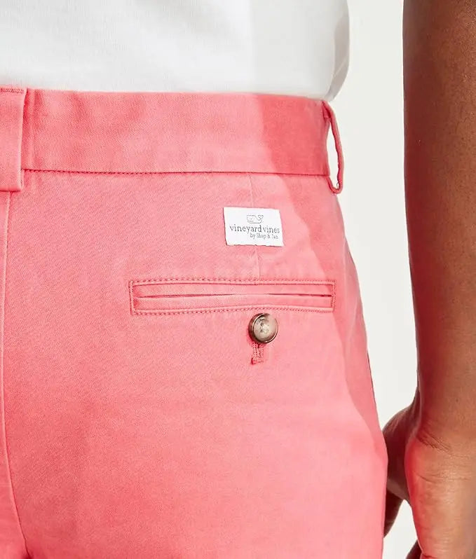 We've always loved traditional chino shorts, so we wanted to keep the classic style but add in subtle enhancements that would keep us comfortable no matter what we got into. vineyard vines Men’s 9 inch Shorts keep all of the tried- and-true style of a pair of classic chinos, with the added stretch and out-of- the-box softness that we (and you) love. The lightweight fabric of these men’s knee length shorts is comfy, strong, and breathable. They stretch for mobility and have a water-resistant finish, so they keep up with you no matter where your day goes. They are great for work, golf, and everyday wear. Plus, these men's shorts have a classic cut for a traditional look with slash, mesh pockets, tonal rubber buttons and a button-through waistband closure. At vineyard vines, we think Every Day Should Feel This Good! We have been family owned since 1998. For over 25 years, we’ve been sharing the gift of the Vineyard with everyone we can. Care Instructions: Machine wash.