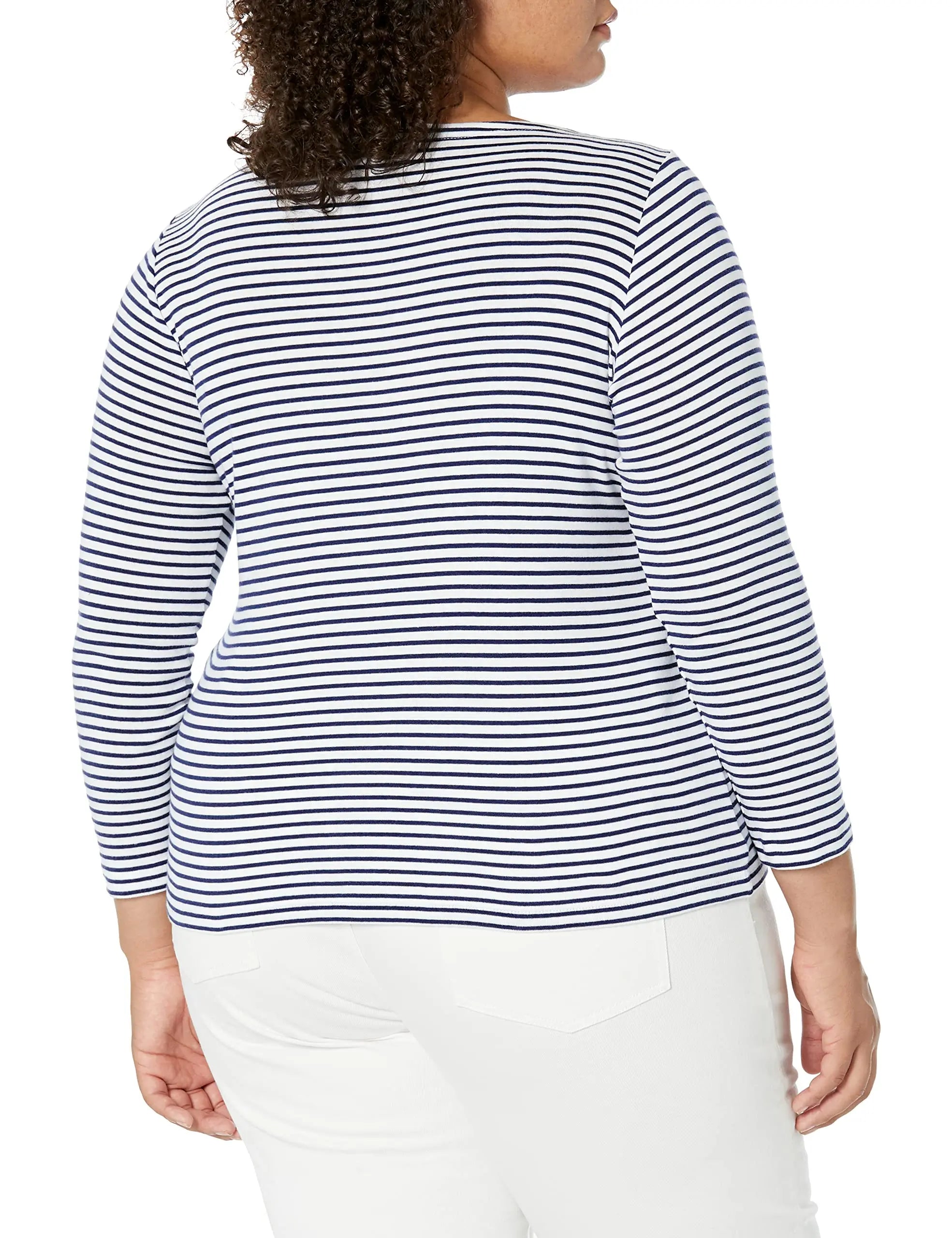 - VERSATILE STYLE With a longer length that never rides up, this is the perfect shirt for layering or wearing alone. With three-quarter-length sleeves, it has that versatile style that will help you look effortlessly put together.