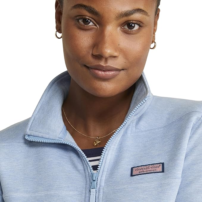 Our cozy DreamclothS Shep Shirt redefines luxe layering. Made for bonfires by the beach, chilly days curled up on the couch, and hiking your favorite trail, this pullover is a staple layer for everyday adventures. This womenâs pullover sweatshirt features a reduced shoulder width for a flattering feminine fit. Plus, the body width and length have increased by about 1â for a roomier, relaxed fit. Features a mock neck with zip, thumb holes, and vineyard vines logo box on the chest. Make sure itâs vineyard vines quality: look for âShips from and sold by Amazonâ at the top of the page, under the product title. At vineyard vines, we think Every Day Should Feel This Good! We are family owned and operated since 1998. For over 20 years, weâve been sharing the gift of the Vineyard with everyone we can. Care instructions: machine wash cold.