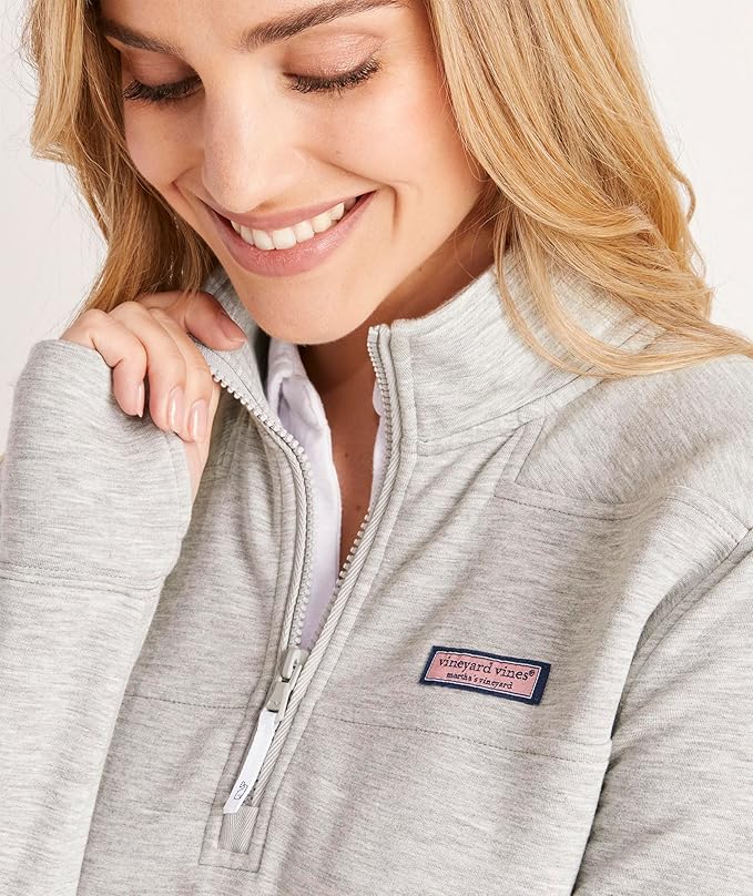 - QUARTER-ZIP PULLOVER FOR WOMEN: The vineyard vines Women’s Shep Shirt features a reduced shoulder width for a flattering feminine fit; Plus, the body width and length have increased by about 1” for a roomier, relaxed fit