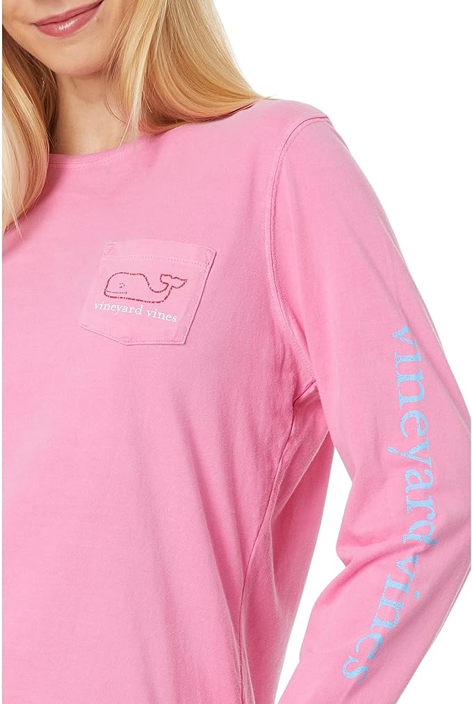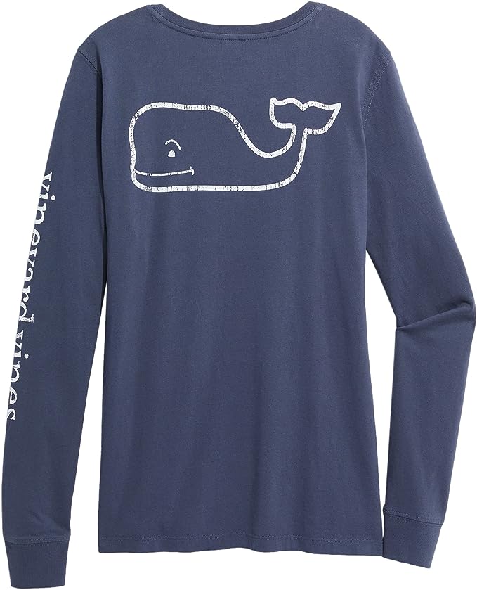 - TIMELESS STYLE The easy, go-anywhere style of this long-sleeve t-shirt will carry you through the day without getting in your way. There are whale logos on the back and the chest pocket, and vineyard vines runs down the cotton t-shirts left sleeve