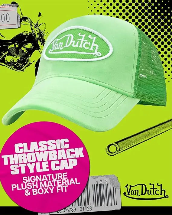 - Authentic Von Dutch Style: Crafted for bold expression, this unisex Von Dutch Soft Plush trucker hat blends luxury and edge. With its rich texture and iconic embroidered patch, it's a standout accessory that elevates any streetwear look. A fine choice for fans of baseball hats, baseball caps for men, and trendy women’s trucker hats that make a statement.