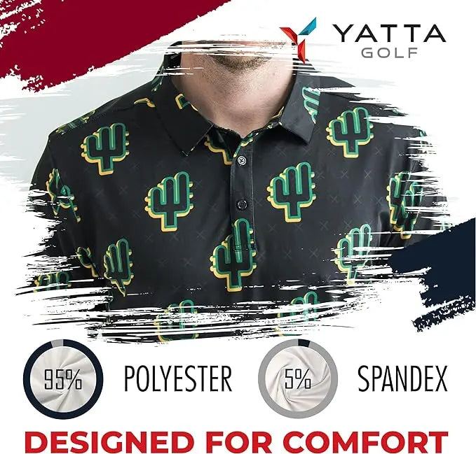 • Soft and Lightweight: As a golfer, it's essential to stay comfortable, so we designed our printed men polo shirt to be ultra soft and light against the skin. You’ve got more important things to worry about than itchy or restricting fabric when you’re on the course. We’ve got your back (literally).