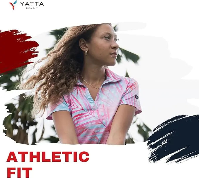 • V-Neck Polo Collars. Standout Designs – Looking great and feeling good on the course is always a plus. Step up your game with the Yatta Golf Women's Golf Polo. This stylish womens golf polo apparel has a comfortable fabric that can keep you dry through even the sweatiest rounds, while maintaining an eye-catching style. Versatile enough to wear every round, this short-sleeved top is perfect as an everyday golf shirt or an athletic womens outfit.