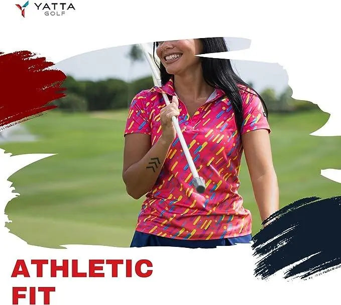 • V-Neck Polo Collars. Standout Designs – Looking great and feeling good on the course is always a plus. Step up your game with the Yatta Golf Women's Golf Polo. This stylish womens golf polo apparel has a comfortable fabric that can keep you dry through even the sweatiest rounds, while maintaining an eye-catching style. Versatile enough to wear every round, this short-sleeved top is perfect as an everyday golf shirt or an athletic womens outfit.
