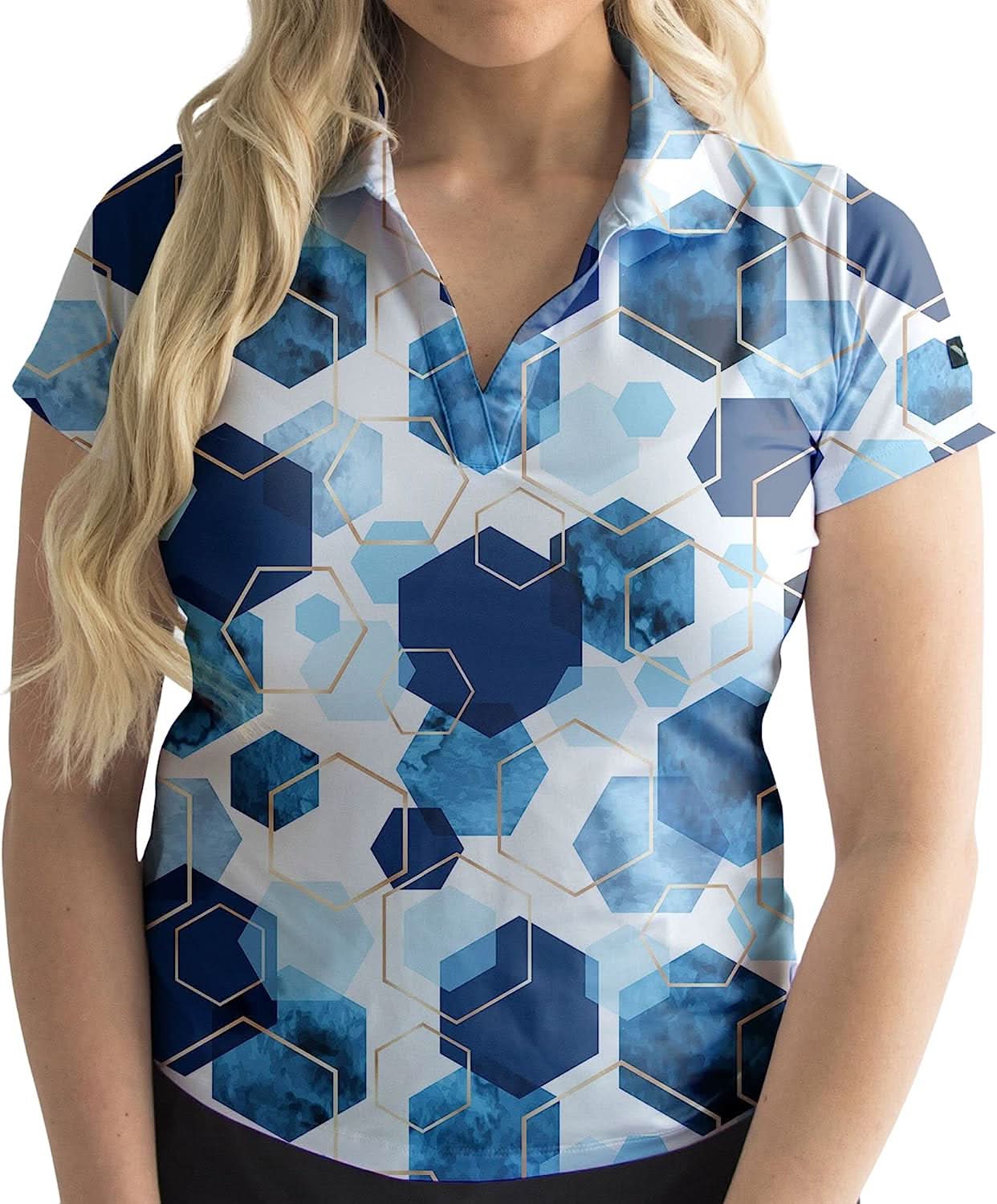 - V-Neck Polo Collars. Standout Designs – Looking great and feeling good on the course is always a plus. Step up your game with the Yatta Golf Women's Golf Polo. This stylish womens golf polo apparel has a comfortable fabric that can keep you dry through even the sweatiest rounds, while maintaining an eye-catching style. Versatile enough to wear every round, this short-sleeved top is perfect as an everyday golf shirt or an athletic womens outfit.