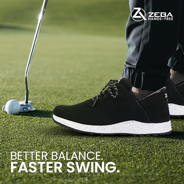 - HANDS FREE: Zeba Golf Shoes Requires No Bending and No Tying Due to Our Hands-Free Design. This Allows for Easy Slip In and Slip Off in Seconds.
