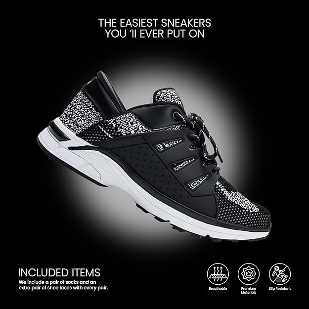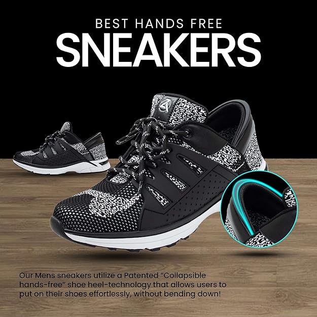 • Put your sneakers on without bending down (Our signature Zeba sneakers use our patent pending "collapsible shoe heel" technology which allows users to put their shoes on effortlessly)