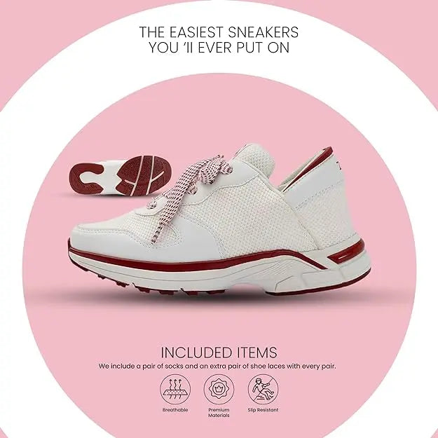 • Put your sneakers on without bending down (Our signature Zeba sneakers use our patent pending "collapsible shoe heel" technology which allows users to put their shoes on effortlessly)
