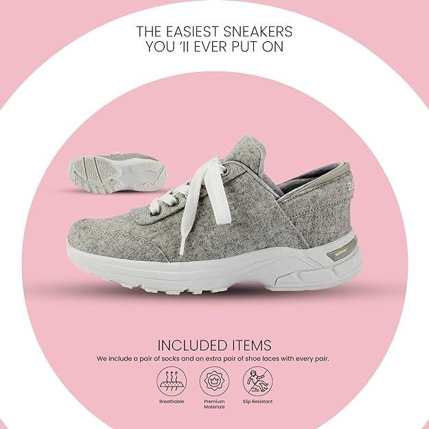 • Put your sneakers on without bending down (Our signature Zeba sneakers use our patent pending "collapsible shoe heel" technology which allows users to put their shoes on effortlessly)