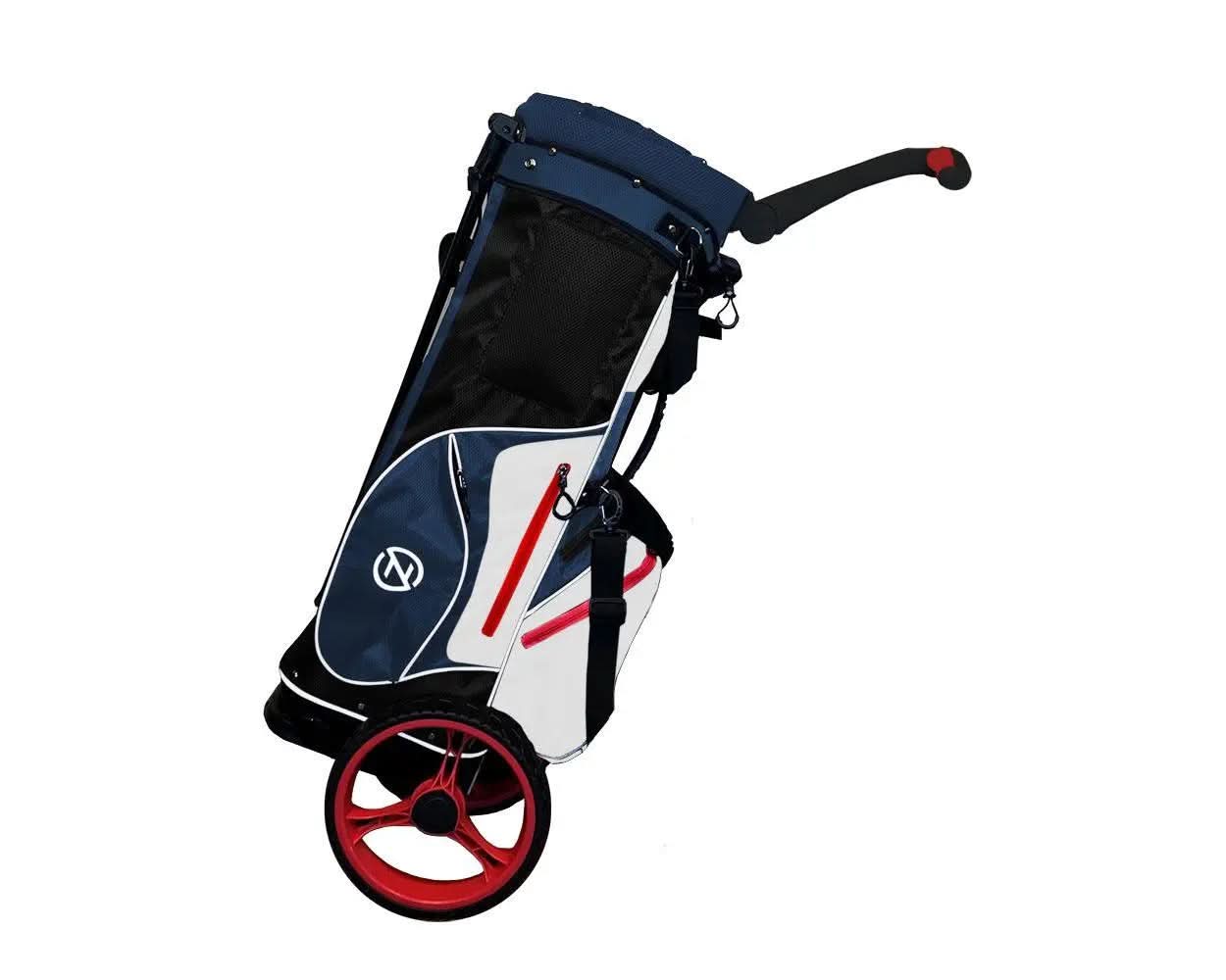 Zero Friction does it again with this revolutionary one-of-a-kind golf bag. The original Wheel Pro pushcart bag has a revolutionary 3 in 1 design, the only one of its kind in the golf industry. The 3 in 1 design allows you to use the bag 3 ways; 1) push or pull cart 2) a carry stand bag or 3) with use on a motor cart. What makes the bag even more unique is that it offers you the ability to easily remove the wheels and store them within the provided nylon bag for cleanliness. When you are ready to use the wheels again you can easily, within seconds, place them back on the bag. The Wheel Pro provides you one bag with convenience at your fingertips.